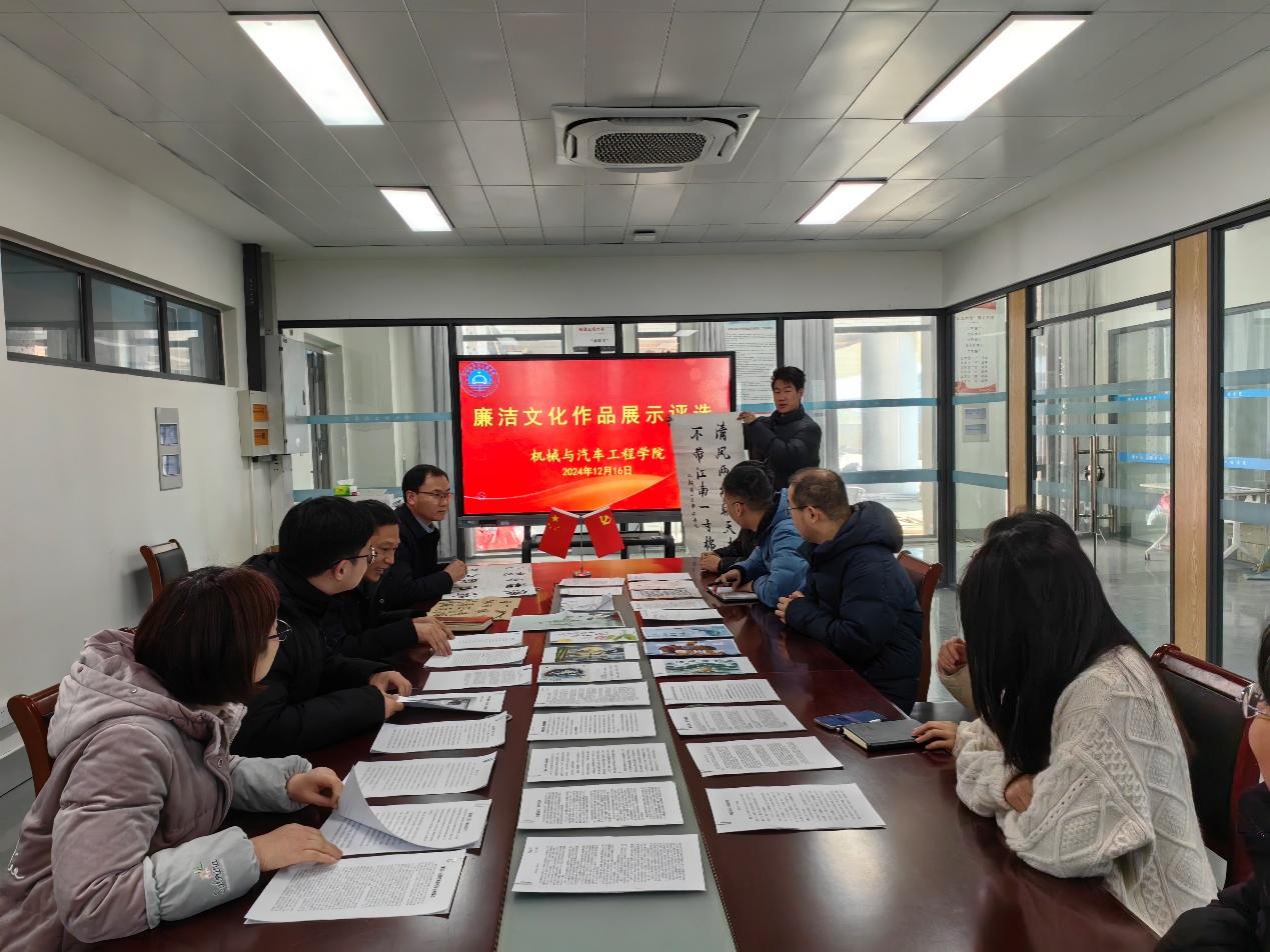 为推进学院廉洁文化建设,进一步夯实清正廉洁思想根基、弘扬崇廉拒腐校园风尚,12月16日,机械与汽车工程学院开展廉洁文化作品征集展示评选活动。学院纪委委员、系部教师代表、辅导员代表、学生代表共同参与作品评选活动。