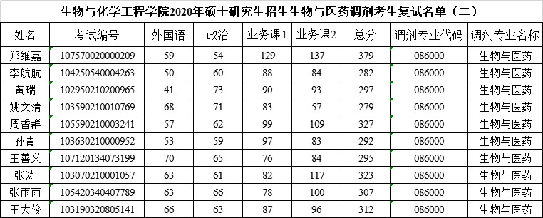 生化学院关于“生物与医药”专业第二次调剂复试安排的通知及名单公示
