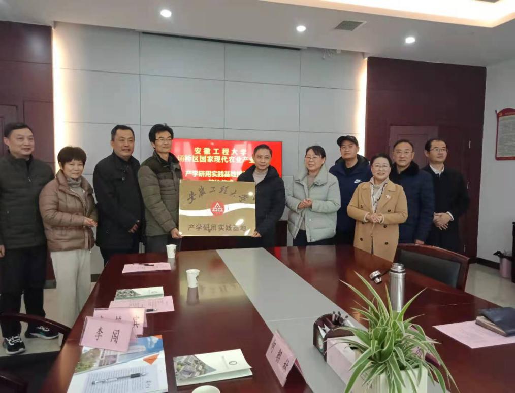 2020年12月14日,在我校科技处的带领下,生物与食品工程学院、人文学院赴宿州市埇桥区国家现代农业示范区管委会开展产学研用实践基地挂牌和签约。参加挂牌和签约一行的有生物与食品工程学院党委书记余传文、院长薛正莲,人文学院党委书记邓英扣,科技处副处长何朝林以及生物与食品工程学院部分教师代表。埇桥区区政府研究中心主任沙雷,区委人才发展服务中心主任仇红影,区国家现代农业示范区党工委书记、管委会主任张梅等相关职能部门负责人出席了会议。