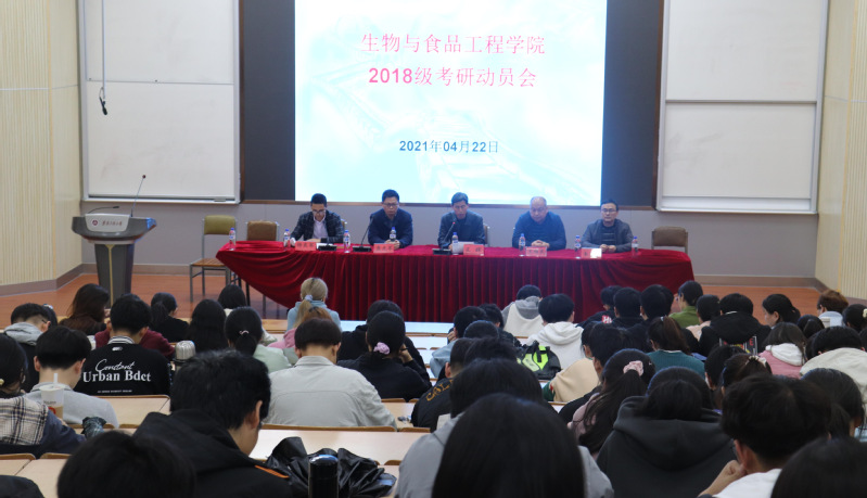 为帮助广大同学深入了解考研动态,及时解决和处理在备考中遇到的各种困难和问题,增强同学们的学习热情和考研激情,4月22日下午,生物与食品工程学院考研经验交流会暨2018级本科生考研动员大会在2J报告厅召开。学院党委副书记王辉、各系部主任和教师代表、全体辅导员、2021年优秀考研学生代表、2018级全体本科生以及2019级部分本科生参加了此次大会。会议由杨良军主持。