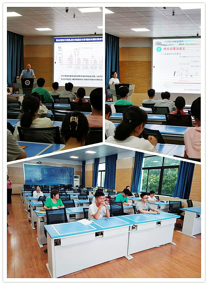戴清源博士作了题为“基于蛋白质自组装低环境敏感型纳米颗粒的形成与稳定机制” 报告,他分别从低环境敏感型纳米颗粒的研究背景和意义;热凝聚法制备制备耐pH和耐盐型纳米颗粒;基于蛋白质纳米颗粒的形成与稳定机制;反溶剂法制备耐pH、耐盐和耐热型纳米颗粒;拉曼光谱研究低环境敏感型纳米颗粒的蛋白质二级结构;蛋白基纳米颗粒形成过程的动力学模拟等方面进行了汇报。李婉珍博士作了题为“DNA甲基化在绿僵菌生长发育中的作用研究”的报告。她阐述了课题的研究背景及意义;研究内容;罗伯茨绿僵菌甲基转移酶基因的分析;基因组DNA甲基化在罗伯茨绿僵菌生长发育中的作用;主要结论以及创新点。