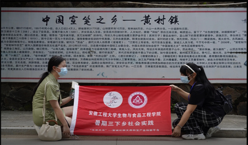 泾县黄村镇是“中国宣笔之乡”,《笔墨纸砚》纪录片也曾在此摄像。宣笔源于秦朝,盛于唐宋,历朝均为“贡品”和御用笔,制作精美、设计独特。宣笔制作技艺已列为国家级非物质文化遗产。实践团队了解到这家红星宣笔厂已有八年历史,大部分宣笔制造者的年纪在45岁以上,虽然工作条件艰苦但他们也一直在坚守传统文化。实践团队通过近距离的观察和学习了解到宣笔的制作需经选料、水盆、并片、齐毫、修笔、盖笔、压毫、修笔、封胶等八大工序一百多个环节,以确保每支宣笔均能达到“尖、齐、圆、健”的标准。