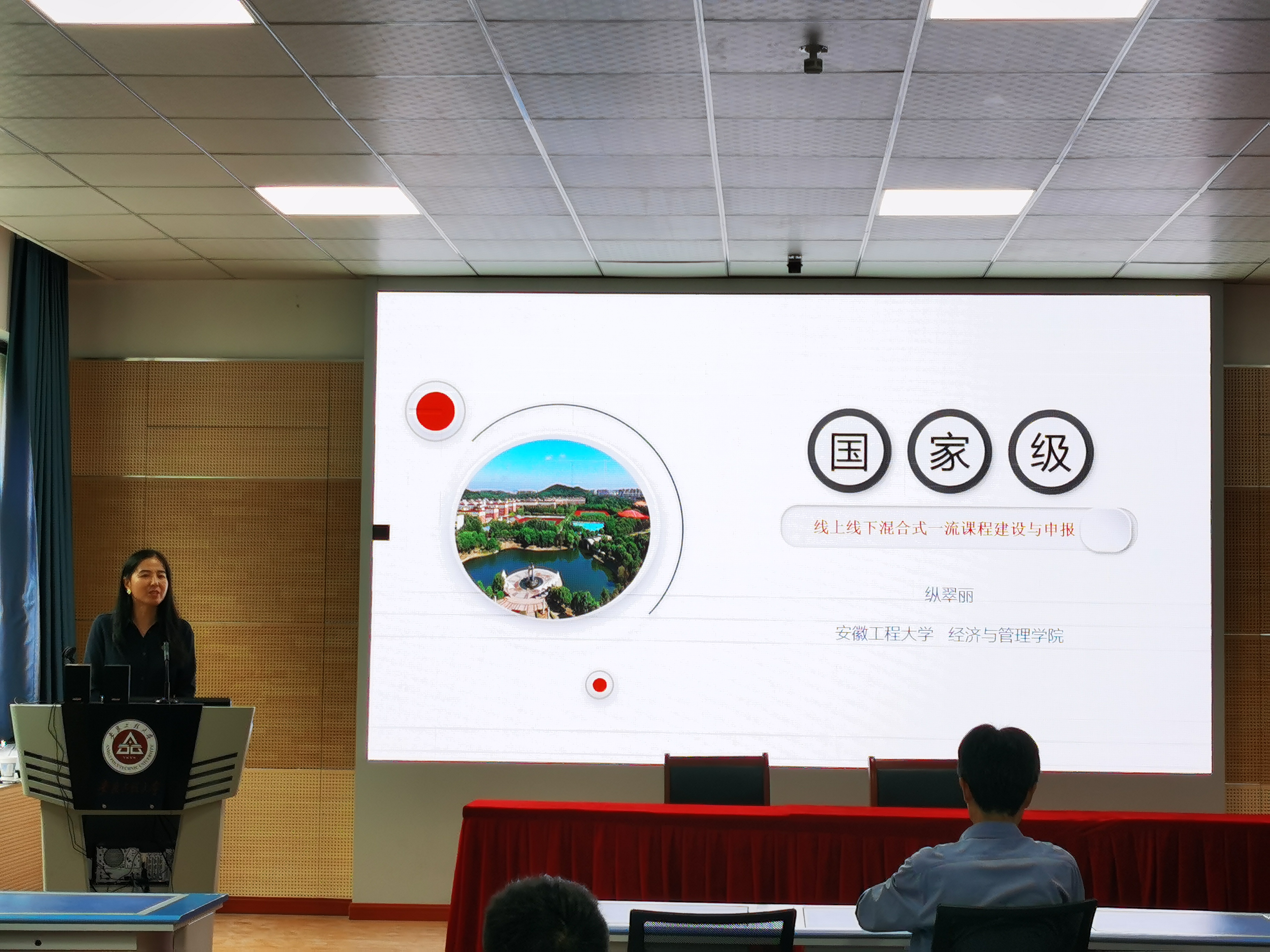 纵翠丽副教授以《国家级线上线下混合式一流课程建设与申报》为题,从一流课程建设背景、混合式课程建设与申报材料的准备、课程目标和课程特色的提炼、教学设计思路、教学方法、教学效果评价与比较等方面进行了详细的阐述,深入细致地解读了混合式课程建设与申报的要点,分享了自己在一流课程建设过程中如何达成高阶性、创新性、挑战度的实例。