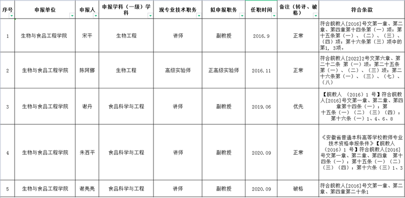 经个人申报,学院组织材料审核和学校人事处组织审核,经10月28日学院教授委员会审核,现将生物与食品工程学院2022年职称申报资格审核结果进行公示。