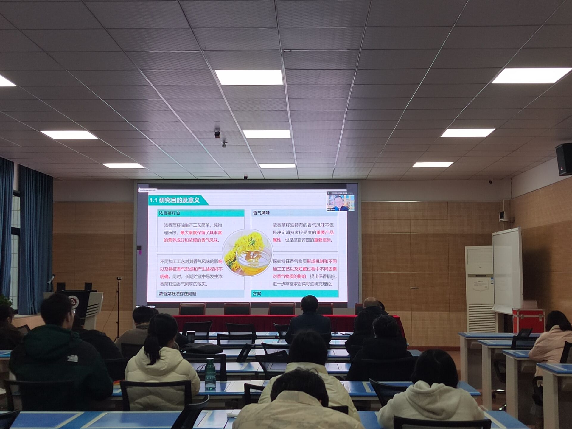 于教授的报告题目为“浓香菜籽油产香机制及调控研究”。报告主要围绕“炒籽过程中浓香菜籽油产香机制研究;加工工艺对浓香菜籽油香气成分及其品质的影响;浓香菜籽油贮藏过程中主体风味物质变化及调控”等方面进行汇报。汇报内容与我院相关专业研究方向契合度非常高,参会的广大师生结合自身研究内容踊跃发言,虚心请教。