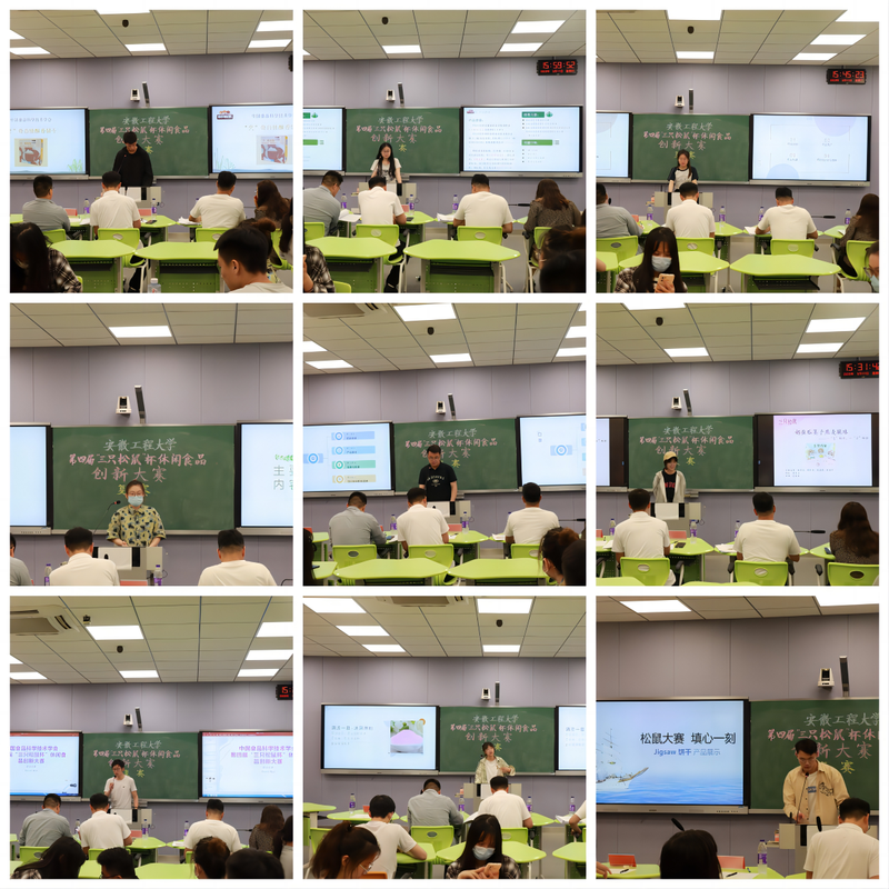 为更好地以学院“五共”党建品牌创建推动学院党建与发展工作的深度融合,稳步推进学校“三全六专”育人实践,激发在校大学生的创新创造能力。5月17日,生食学院承办的校第四届三只松鼠杯食品创新大赛在4J112智慧教室举办。食品专业党员教师李玉峰、庄齐斌、学生党支部书记杨良军、何祥玲老师担任本次大赛评委。