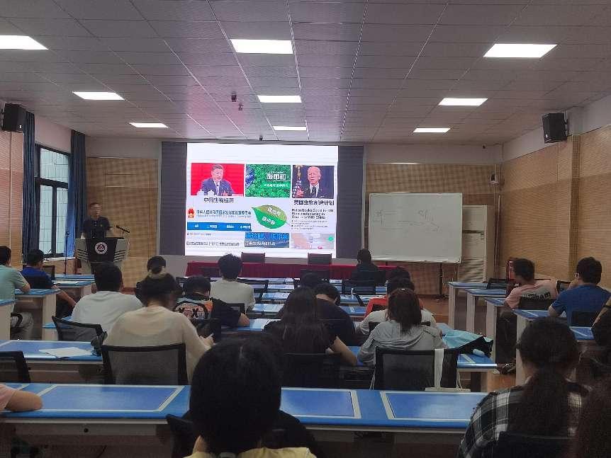 阎教授报告题目为“生物催化与生物合成绿色化学品”。报告首先介绍了合成生物学助力生物制造研究进展情况,并围绕“蛋白质基水下粘合剂微生物细胞工厂构建”等四个研究方向进行了详细阐述。并展望生物制造的应用前景和未来研究方向。