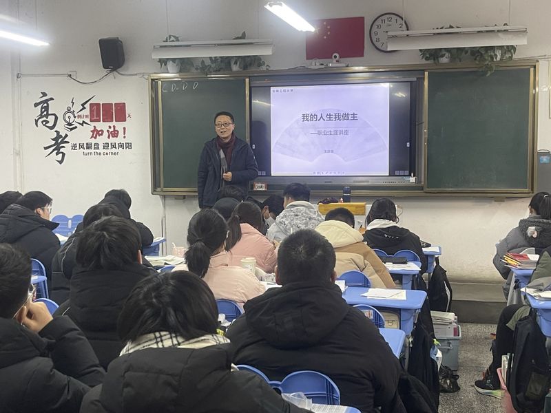 王彦青从如何认识自我、认识职业、制定规划、评估调整等方面介绍了未来大学的学习与生涯规划,指导同学们深入了解自己的兴趣、特长、价值观和目标角度,具体分析如何明确人生目标与职业理想,科学合理地规划学习和生活,走好人生的每一步。接着,王彦青围绕学校的办学历史、专业特色优势、个性化人才培养改革探索与实践等方面进行了细致入微地介绍。同学们认真聆听,积极参加互动交流,现场氛围热烈。讲座受到广大师生的一致好评。