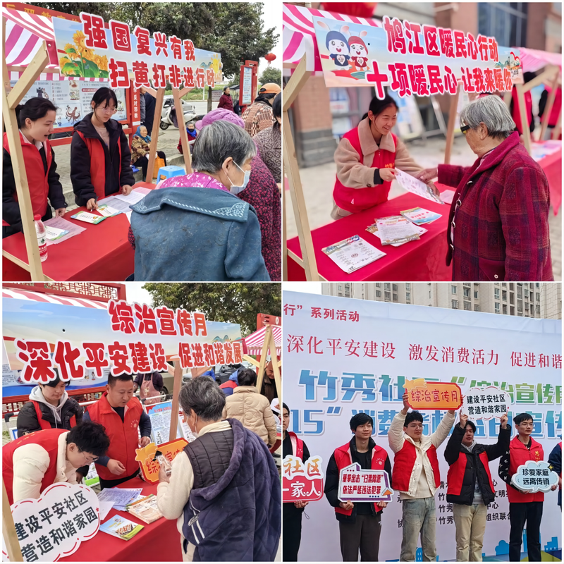 3月13日,十余名志愿者们联合竹秀社区开展“治安宣传月”暨“3.15”消费者权益日宣传活动志愿服务,志愿者在各自的摊位分发宣传单页、海报及社区服务指南等材料,向社区居民群众宣传消费者合法权益,协助社区邀请的专业律师,做好居民相关消费纠纷问题的咨询解答工作。