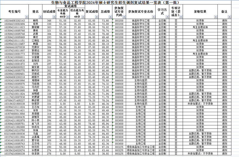 生物与食品工程学院2024年硕士研究生招生调剂复试结果一览表(第一批)