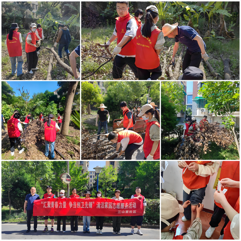 58日下午,食品231团支部和生制231团支部联合镜湖区三山里社区开展社区清理志愿服务活动。志愿者们在社区街道、绿化和其他公共场所分片清理、分工合作,拿着清洁工具,垃圾袋、手套、扫帚、铲子等,寻找垃圾,从败叶到枯枝,从瓶罐到烟头,他们对社区内每个角落的垃圾都不放过。经过三个小时的清理,辖区内被打扫得干干净净,环境焕然一新。志愿者们劳动热情高涨,积极发扬志愿服务精神,不怕脏、不怕累,个别同学还蹭破了膝盖也不独自休息。