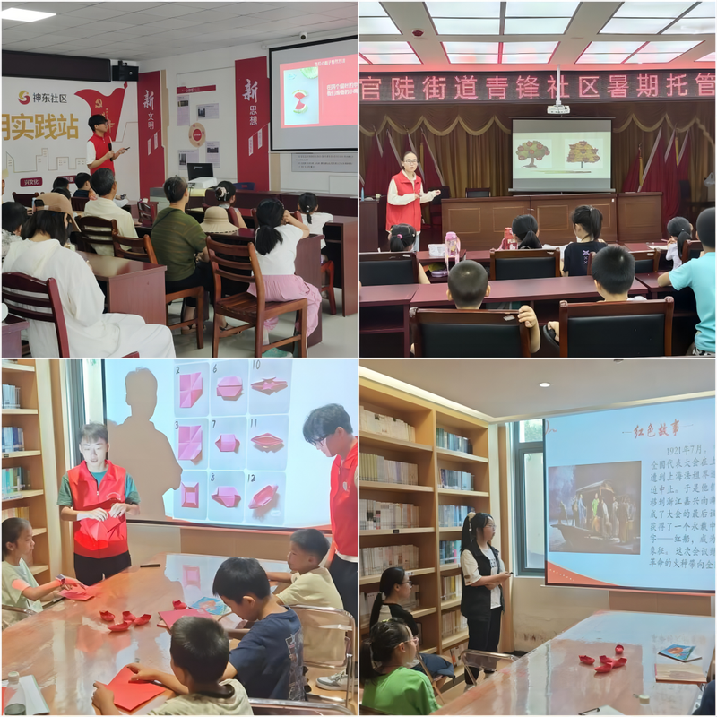 在赤铸书院,团队成员专注于宣扬红船精神,向孩子们详细介绍了中国共产党第一次全国代表大会在浙江嘉兴南湖的一艘游船上胜利闭幕的历史意义,通过丰富的历史素材与生动的故事,让小朋友们感受到了红船精神中的勇敢和坚持。为巩固教育成果,团队成员现场演示折叠红船模型。小朋友们通过折纸创作,加深了对这一象征性标志的认识。