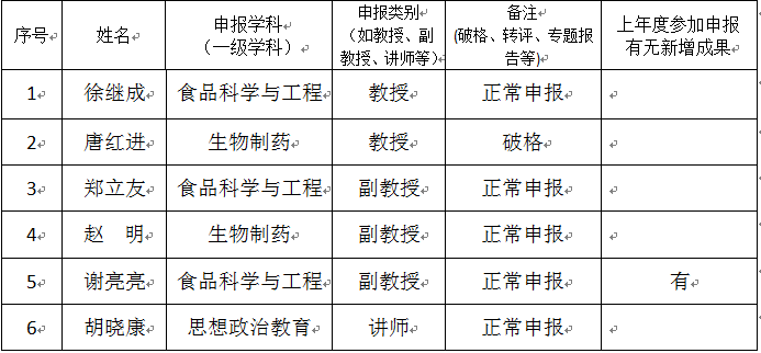 经生物与食品工程学院集体审核,确认以下人员符合申报资格条件,现予以公示。