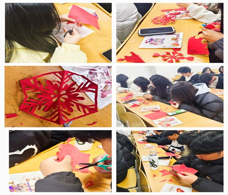 为传承中华传统剪纸艺术,同时帮助同学们缓解考试压力,12月18日下午,食品241在4教104组织开展“新岁新启程,青春绽芳华”劳动教育主题团日活动,活动由团支书乔梦怡主持,辅导员钟莉娟全程参与指导,食品241全体同学参加。