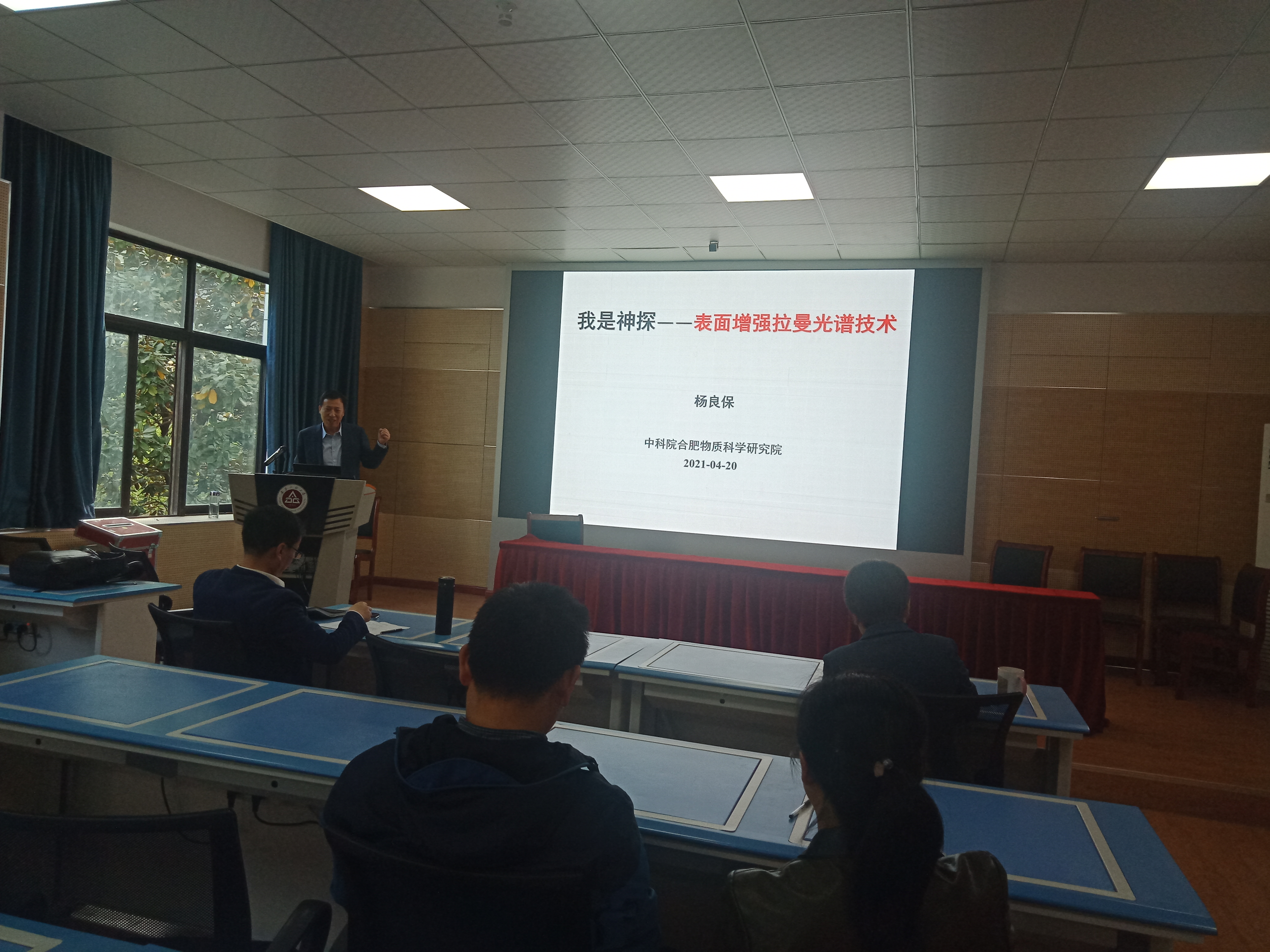 4月20日下午3:00,在仿真中心(老图书馆2楼),中国科学院合肥物质科学研究院研究员、博士生导师,我校杰出校友杨良保应邀来我院作题为“我是神探-表面增强拉曼光谱技术”学术报告。参加报告会的有学院院长薛正莲、副院长张国强、部分教师和研究生代表,报告会由张国强主持。