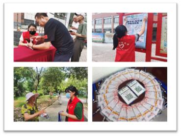 同时,为了使活动能帮助到社区内的更多居民。团队挑选在傍晚人流量较大的时间段,来到竹秀社区志愿服务广场进行核酸登记码的宣传,通过与爷爷奶奶更近距离地交流讲解,来让本次志愿实践活动为更多的居民提供便利。