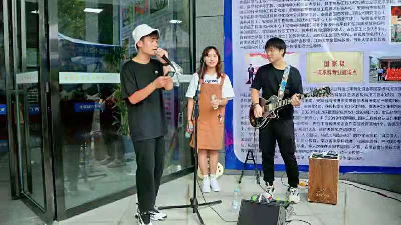 实打实花式迎新。此次学院迎新融合思想引领、学科专业特色和学院传统设计了“吃出兴趣”、“喝出健康”、“玩出创新”和“唱出活力”4个创意环节。“吃出兴趣”,学院师生在现场直播进行冰淇淋制作,供学校师生品尝享用,旨在激发萌新们的专业兴趣;“喝出健康”,延续学院传统手艺迎新,现场贴心准备了由“舌尖上”的食品科学与工程专业师生自制的营养酸奶,让萌新们体验一回健康“吃货”;“玩出创新”,在迎新现场设置标本展览区,将数个由生物制药专业学生们在参加往年安徽省大学生生物标本制作大赛中自我设计和制作的标本模型供新生观摩,新生们惊叹于学长学姐们的创新意识和动手能力;“唱出活力”,精心安排了学院自组乐队现场演唱经典歌曲,用歌声与欢笑迎接新生,让大家切实感受到大学文艺生活的丰富多彩和青春活力。