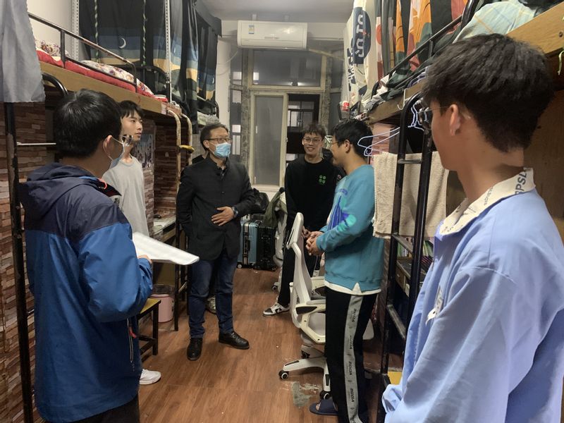 走访中,王彦青仔细询问了学生学习、生活情况,介绍了学校疫情防控有关要求,并现场就学生关心的一些问题进行了直接沟通。他强调,目前疫情形势依然复杂,希望同学们严格遵守学校各项疫情防控要求,随时关注疫情变化,及时参加核酸检测,认真做好个人防护;坚持每日校园健康打卡,如有身体不适,要及时跟辅导员联系;要注意保持宿舍卫生,勤通风、勤消毒;坚持非必要不离校不离芜,严格执行请销假制度,共同维护安全和谐的学习生活环境。