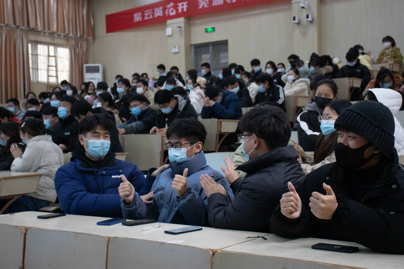 钟莉娟向2019级全体考研备考生播放由各系部教师代表、往届考研优胜学生代表、低年级学生代表共同参与录制的“传递祝福 暖心‘降’压”主题考研祝福视频。视频中,教师代表分别用自己的语言向备考生们表示诚挚祝福,考研优胜学生代表就考研冲刺阶段送上温馨提示,低年级学生代表则用精心制作的“加油”集锦视频表达美好祝愿。视频中的温暖祝福和真挚关怀,极大缓解了每位考研学子内心的压力与焦虑。