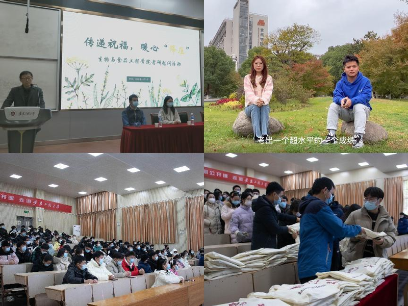 开展考研慰问,暖心鼓励,传递力量。12月1日上午,学院举办了“传递祝福,暖心鼓励”考研心理慰问活动。学院党委副书记王彦青代表学院作考研慰问讲话,鼓励同学们在最艰难困苦的冲刺阶段保持耐心,认真复习,积极备考。各系部教师代表、往届考研优胜学生代表、低年级学生代表共同参与录制“传递祝福 暖心‘降’压”集锦视频,远程送上祝福。学校心理健康教育中心老师程香娟作考研解压专题讲座,向同学们科学分析几种考前心理压力情形,并教授缓解考研压力的有效办法。杨良军和李良渊代表学院为全体备考生分发了慰问品。