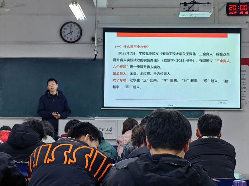 本次班会旨在引导青年大学生坚定信仰,勇担重任,努力成为马克思主义的践行者。学院将全面贯彻落实校“三全六专”工作实施方案,做好青年学生思想和价值引领,结合学院特色用心做好服务,为更好助力学生成长成才奠定坚实基础。