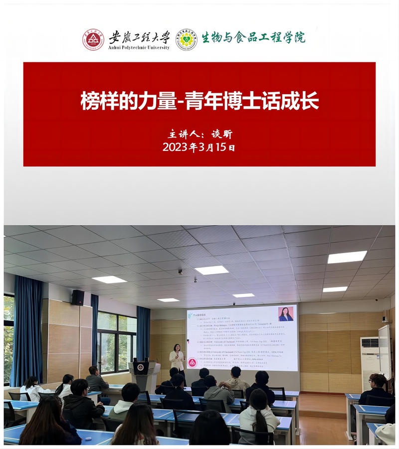 为深入落实学校“三全六专”工作要求,提高学生学习积极性,加强专业认同感,培养科研兴趣,进而促进学风建设。生物与食品工程学院于3月15日在学院虚拟仿真中心举办了“青年博士话成长”系列专题讲座,本次活动邀请生物与食品工程学院新进青年博士谈昕老师作为主讲人,部分大一、大二学生参加了本次讲座。