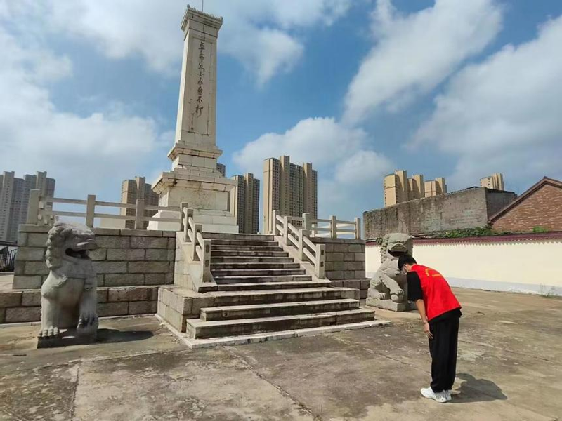 8月1日,实践团队成员李扶养,来到亳州烈士陵园,走进陵园,革命烈士纪念碑映入眼帘,顺着纪念碑望右转,是由60块碑刻组成的亳州革命斗争史碑林,其中的碑刻讲述了自1919年新文化运动以来亳州革命斗争史上的大事。穿过碑廊,就是张爱萍将军题词的“芦家庙战斗胜利纪念碑”,该碑侧面是滕海清同志题写的“革命烈士永垂不朽” 的碑文,与纪念碑遥遥相望的就是烈士纪念馆。馆内,由彭雪枫领导的抗日战争时期新四军游击支队在亳州开展革命的资料很多,很可惜很多烈士和卫国牺牲的干群资料不祥,只留下照片或姓名。参观过后,成员深感当时抗战的不易,也深刻体会到了什么是红色精神。