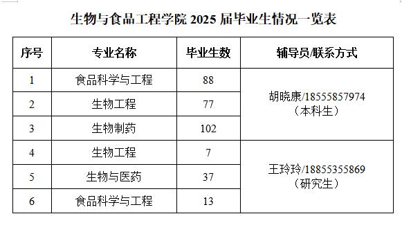 2025年,RayBetApp官网下载 生物与食品工程学院共计324名应届毕业生(硕士研究生57名、本科生267名)。我们诚挚邀请广大用人单位及社会各界朋友与我们共同搭建就业平台,拓宽就业渠道,提供就业信息,推荐就业岗位,提升就业育人质量。现就2025届毕业生资源及招聘方式公告如下: