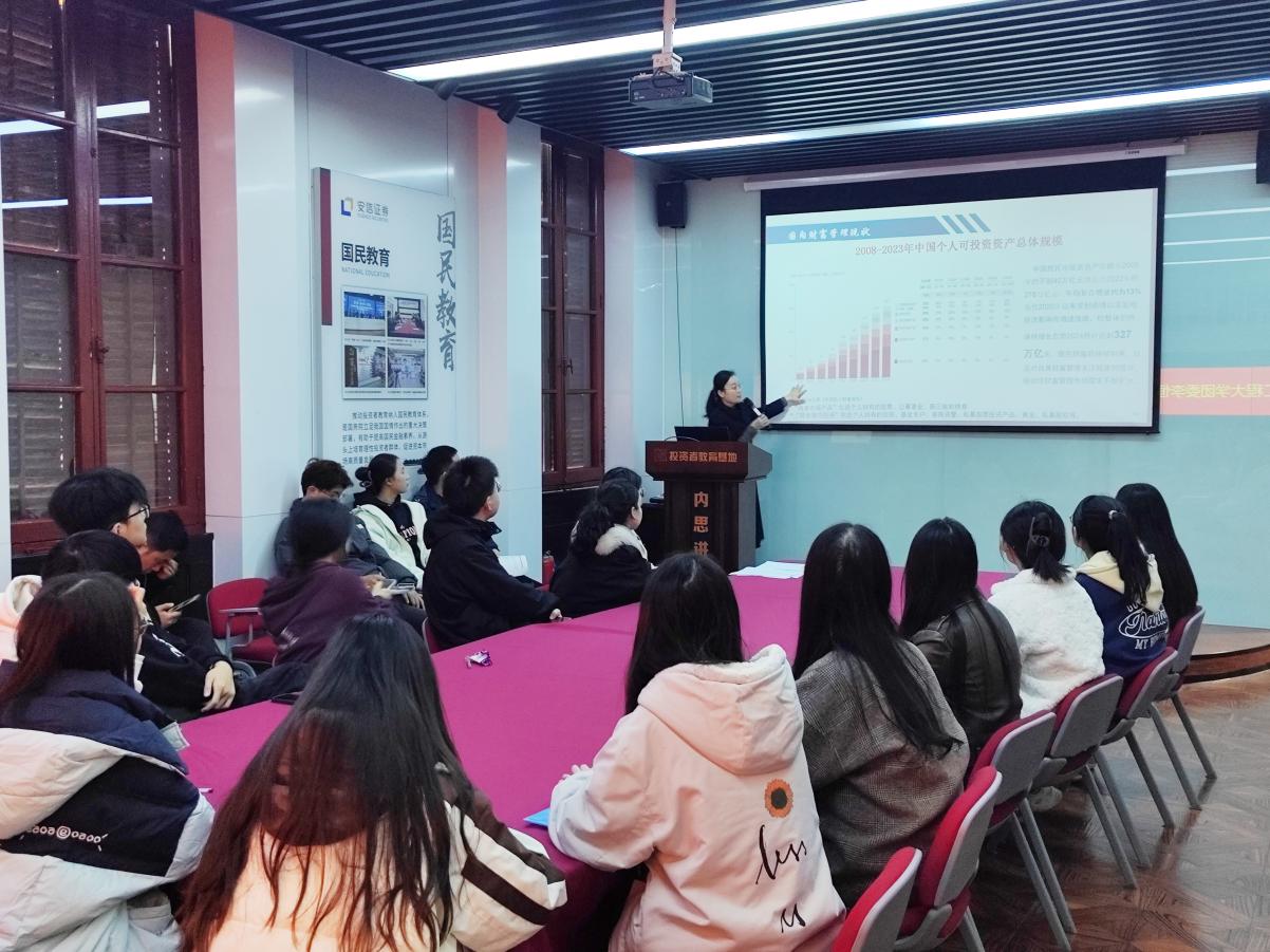 见面会结束后,共建双方党支部成员共同前往安信证劵投资者教育基地进行参观。安信证券安徽分公司资深投资顾问胡蓉给党员们讲授了一堂关于《数字金融与财富管理新时代》的讲座,让共建双方成员进一步了解了金融知识及相关专业的前景。随后大家实地走访了三只松鼠股份有限公司,对三只松鼠“正道创业,让年轻人更爱党”的企业文化有了更深的了解。