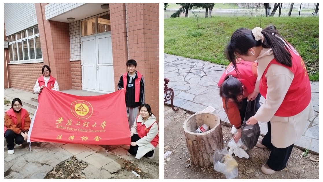在校园里,团队成员手持扫帚、垃圾袋等清洁工具,开展“发扬雷锋精神,共建美丽校园”净化校园活动。团队成员分工合作、互相配合,将散落在校园内的瓶罐等垃圾进行集中清理,以实际行动践行雷锋精神。
