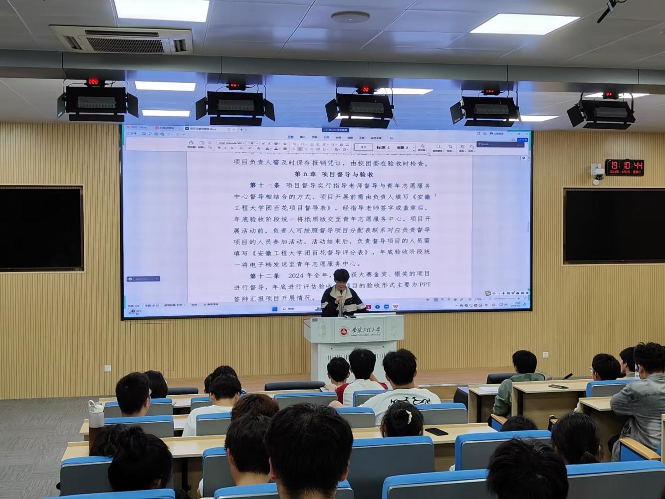 青年志愿服务中心志愿服务部庞建旺同学详细介绍了第十二季“团百花”学雷锋志愿服务行动的督导细则,特别强调了金、银奖项目和重点项目的督导验收要求以及活动开展过程中的新闻稿或推文的撰写。
