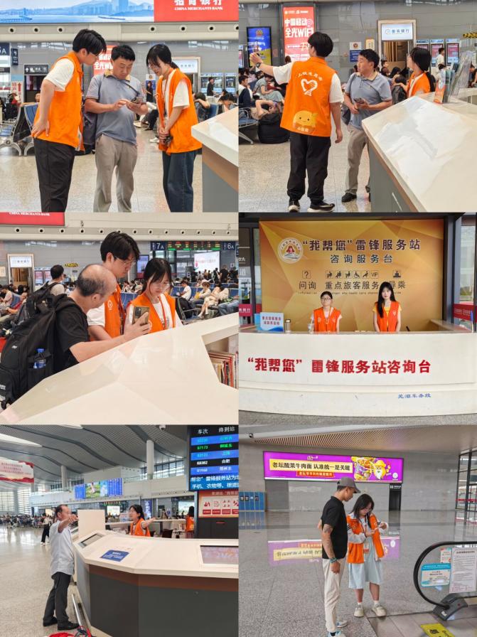 端午期间,芜湖站发送旅客24.7万人次,日均4.94万人次。其中,6月8日为客流最高峰日,当日发送旅客5.5万人次。在芜湖站的大力支持下,共160名志愿者参加本次志愿服务活动。根据芜湖站旅客分布和特殊人群需要的安排,本次活动增添了母婴室志愿者服务,调整了对售票厅和进站口的志愿者安排,提高了志愿者服务效率和旅客满意度。东进站口雷锋服务台的志愿者为准备检票进站的旅客耐心解答疑问、指明道路;扶梯口的志愿者帮助旅客将行李提到候车区;母婴室的志愿者为孕妇、儿童等特殊人群提供帮助……志愿者们在各自岗位认真负责、毫不懈怠,彰显出新时代大学生的青春担当。