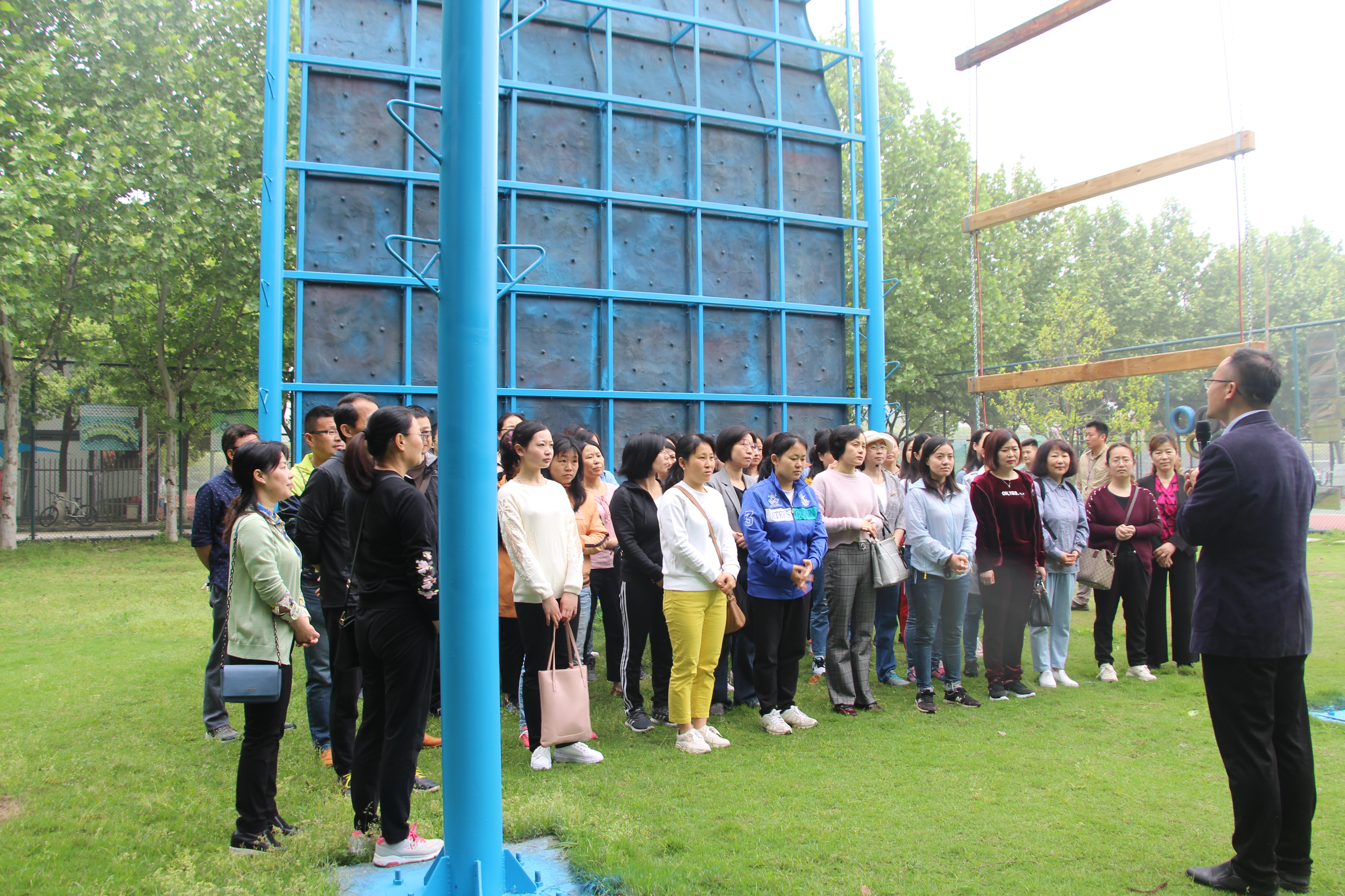 4.25日上午,由我校体育学院体验产业学院执行院长薛保红为图书馆教职工团队简单介绍了水杉营地并进行了简短的开场:水杉营地是我校的特色,是国内唯一一个建设在高校的标准化营地。在这里倡导健康的体格、坚毅的品格、和善的性格的完整人格发展理念。这里崇尚以生为本的教育宗旨:即以学生的生命个性健康成长为本,将生活能力、生存技能、生态意识、生机焕发、生命价值、生长发展融为一体的“六生”教育体系。接着,为了活跃氛围,增强团队信任感,我们设计了浣熊圈等活动,还带领教职工团队开展了“大海捞针”,使教职工更好的认知团队角色的作用、有效沟通方法、强化集体荣誉感。