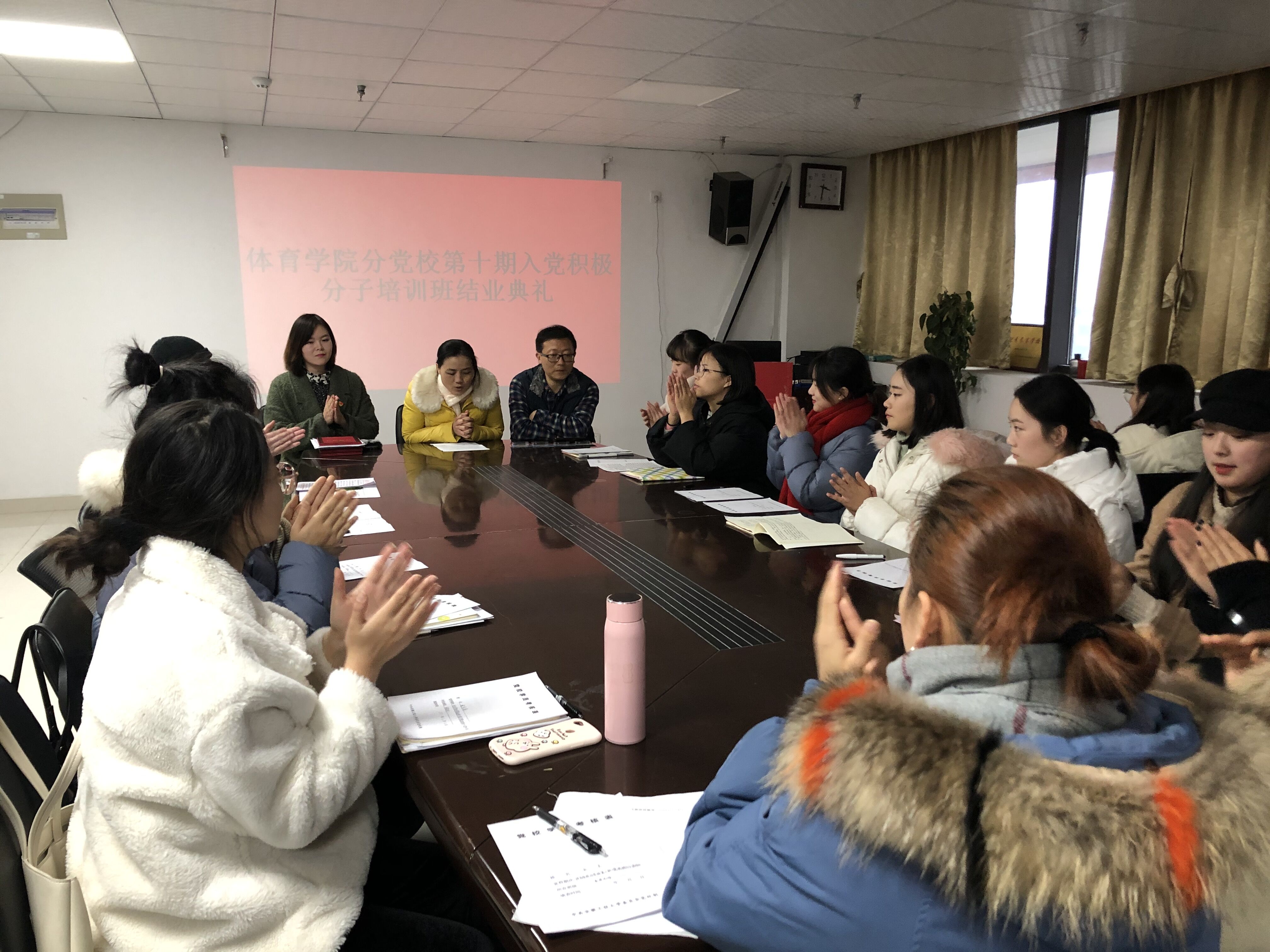 12月24日下午,体育学院分党校第十期入党积极分子培训班结业典礼在415会议室举行。体育学院组织员王彦青、学生党支部书记黄蓉静以及本期培训班班主任孙霞参加了会议,会议由孙霞主持。