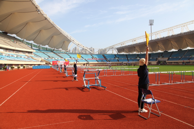 赛前,体育学院金庆红老师与校学生田径俱乐部成员对即将参与工作的同学们进行了全面的裁判、志愿者业务培训,培训中着重强调了纪律及服务意识。