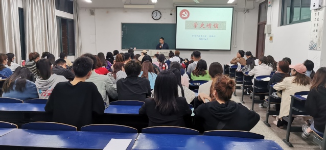 4月28日晚7点,体育学院党总支书记杨善祥在6教208教室为各班级学生代表、研究生代表上了一堂题为“学史增信”的党史教育专题党课。