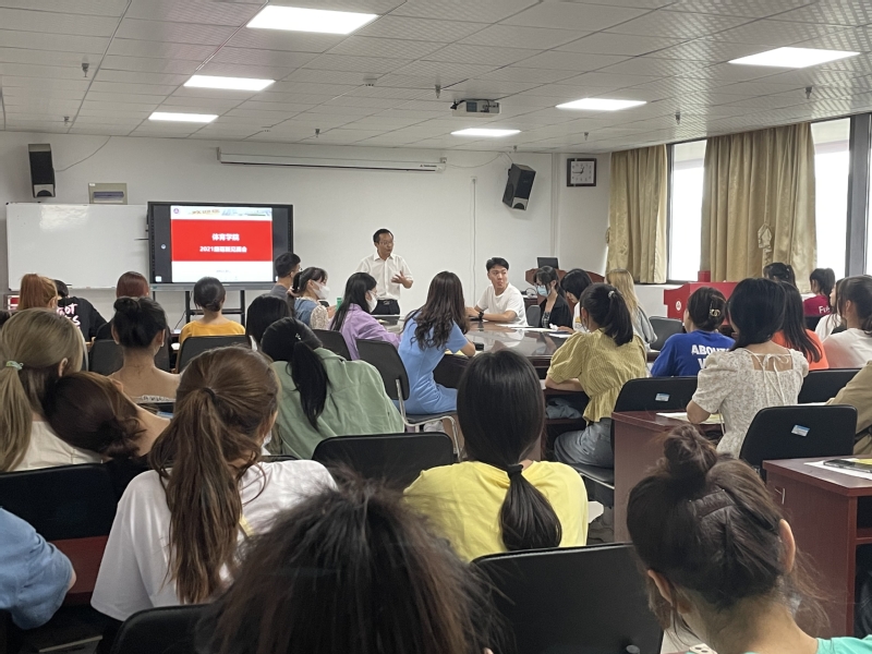 9月14日下午,学院专门安排了新生专业教育和党史学习会议。体育学院院长胡好、副院长金庆红、辅导员许诚和全体新生参加会议。