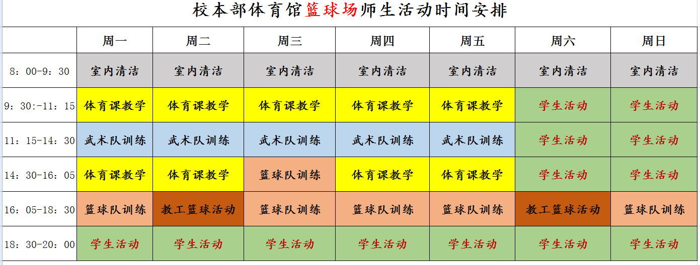 疫情期间,为进一步提高学生体育参与的积极性和参与率,增强学生身体素质,体现“学生中心”办学导向,经体育学院研究决定,体育场馆师生活动时间安排如下: