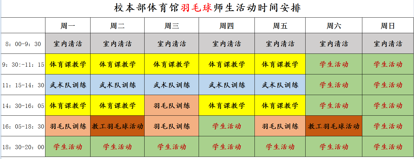 3、请各位同学、老师严格按照各自活动时间段入馆锻炼。