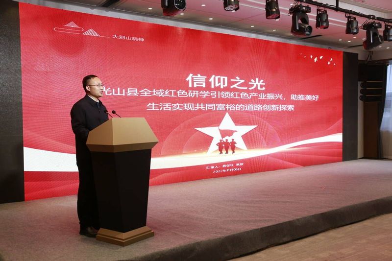 信阳市光山县地处大别山革命老区,发展红色研学产业是光山县传承革命精神、传播红色文化、赋能乡村发展的重要方向。薛保红在主旨发言时从全域性、前瞻性、教育性、人本性角度出发,详细介绍了光山县全域红色教育研学的规划方案,指出开展全域红色教育研学是河南省引领红色产业振兴、助推实现共同富裕的创新探索。光山县地处大别山革命老区,红色资源得天独厚,是红25军万里长征的决策地、是刘邓大军挺进大别山的转折地、是新时代“路子找到了,就要大胆去做”的先行地。他从全域研学的顶层设计出发,提出未来3-5年内带领团队努力将光山县打造为大别山红色精神信仰新高地、全国知名红色文化传承地、全域大思政课实践教育主阵地、鄂豫皖红色研学枢纽驻扎地、红色研学引领产业振兴先行地。