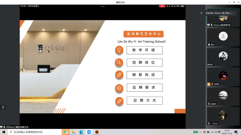 宣讲会上,芜湖市鸠江区小百花艺术培训中心(城东少年宫)、安徽美仑教育咨询有限公司、六安风采艺术培训学校、群英艺术梦立方舞蹈、安奇艺术学校、镜湖区金泽舞艺艺术中心和尚舞星艺舞蹈学校七家公司或培训机构分别从公司的发展现状、薪资待遇、工作环境、岗位要求以及应聘的基本流程等方面进行了详细汇报。听取汇报后,同学们表示对宣讲公司以及本专业的岗位能力市场需求有了初步的判断,为下一步更有针对性地准备就业、成功就业提供了宝贵的经验。