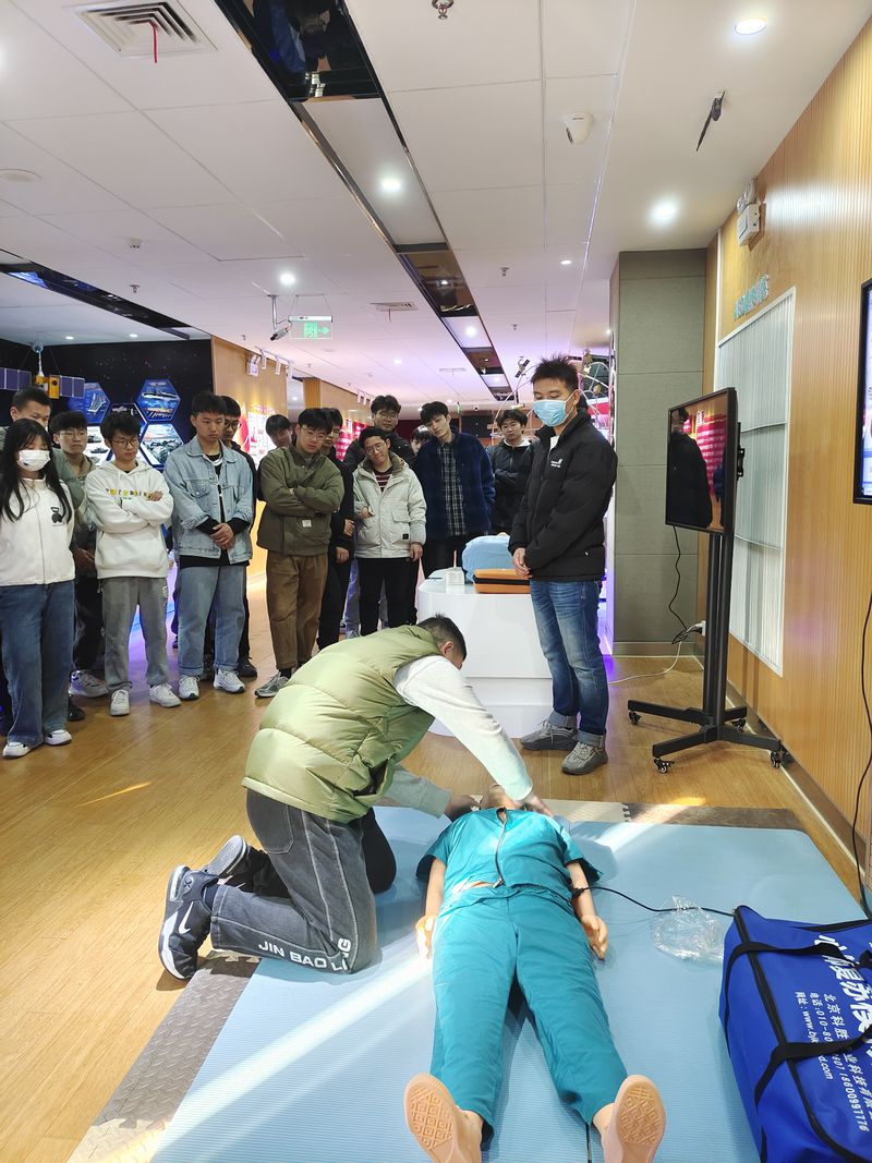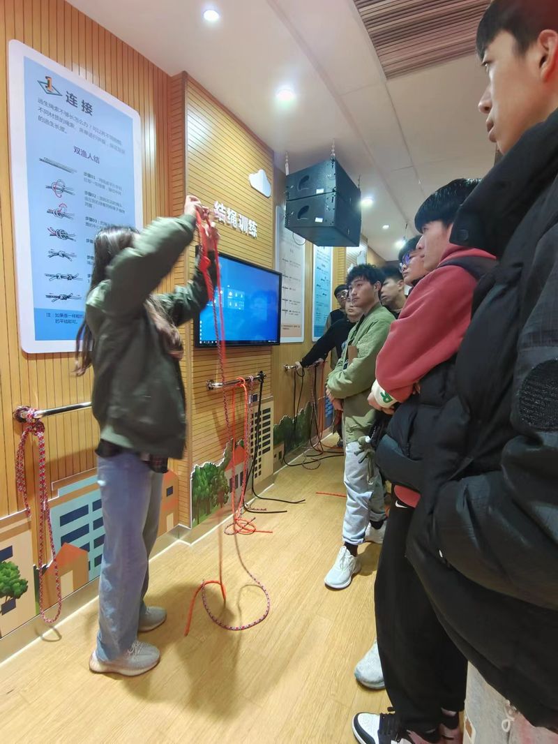 本次教学过程中,于霄云通过视频、图片等多种方式为大家开展了国防安全知识普及教育,帮助同学们提高国防安全意识;刘万成、计卓为大家演示了AED操作训练、心肺复苏救护训练和海姆利克训练。这些都是安全急救的必备技能,通过讲解和体验,帮助同学们掌握救护基本技能,增强自和他救能力;何梦圆带领大家学习消防标识,让同学们体验烟雾逃生模拟情景,讲解并演示了三种基本结绳的操作手法。目的在于当危险发生时,同学们能够采取正确、有效的措施,最大程度降低伤害。