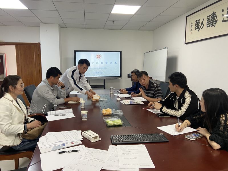 随后,所有参加观摩的教师一起交流研讨,主题是本节课如何体现“金“彩一课的含金量的。老师们畅所欲言,充分肯定了本次课程教学PPT、教学方法和课程思政融入方面的亮点,也在课堂板书上提出了中肯的意见和建议。