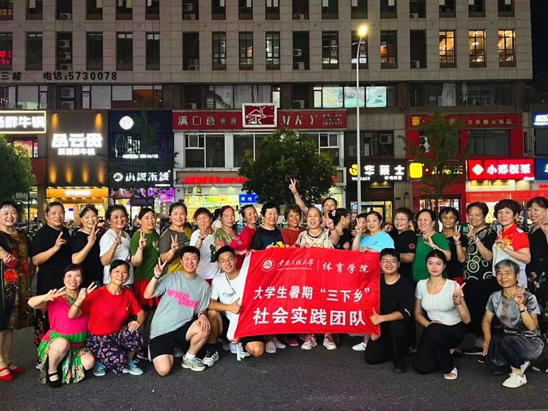 发挥学院专业优势,宣传健康知识,助力全民健身。体育学院暑期“三下乡”社会实践团队分赴各地广场、公园开展健康宣传,活力跳操活动。