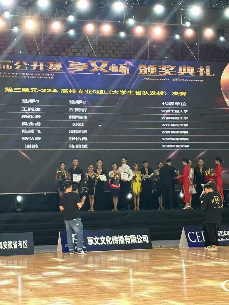 校学生体育舞蹈队在青年教师陶惠慧的指导下,积极实践“三全六专”,长期坚持勤学苦练,多次在全国赛场上斩获佳绩。在举国上下欢庆国庆佳节之际,体院师生再次以优异战绩展现我校学子良好的竞技水平和精神风貌。