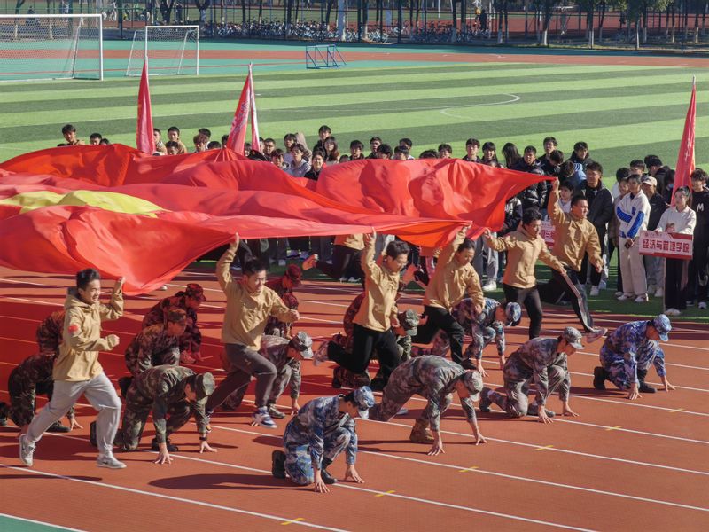 国防是国家安全的基石。为强化国防教育,培养大学生的国防意识和国家安全观,我校已经连续举办了三届红色国防运动会。本次红色国防体育运动会是在全校大力推进的“三全六专”育人实践背景下,对学生进行的一次“正起来”、“壮起来”、“乐起来”相结合的沉浸式爱国主义体验教育。此次红色国防体育运动会由校学工部、武装部、校团委和体育学院联合承办,融爱国主义教育、国防教育和体育竞技于一体的大学生运动盛会,具有鲜明国防特色和浓厚军事色彩,吸引了全校16支代表队共300余名学生积极参与。