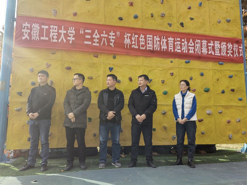 12月6日下午,2023年RayBetApp官网下载 “三全六专”杯红色国防体育运动会闭幕式暨颁奖仪式在水杉营地隆重举行。本次运动会由校党委武装部、学生处、校团委和体育学院联合举办。校学生处副处长杜松涛、校团委副书记周海林、体育学院副院长金庆红以及裁判员、运动员和志愿者代表出席闭幕式。