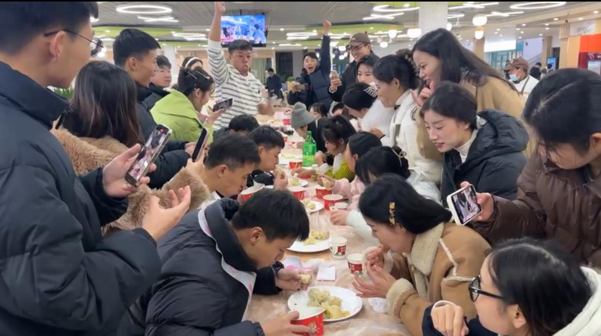12月22日下午,体育学院全体研究生在三食堂一楼举办“浓情立冬,‘饺’暖人心” 活动 。
