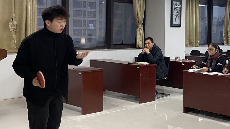 朱祥瑞和毛宏远分别试讲《乒乓球基础》和《足球基础》课,两位老师严格按照通知要求,精心准备教学设计,通过生动的课堂语言、恰如其分的课堂驾驭,有层次、有重点地介绍专项技能,详细讲解并示范动作要领,将课程思政自然融入教学,充分展示了新进教师较高的整体素质和扎实过硬的专业技术能力。评委老师审阅教学教案、聆听试讲,从教学设计、教学态度、教学内容、表达能力、教学技能和教学手段等方面进行了评价。