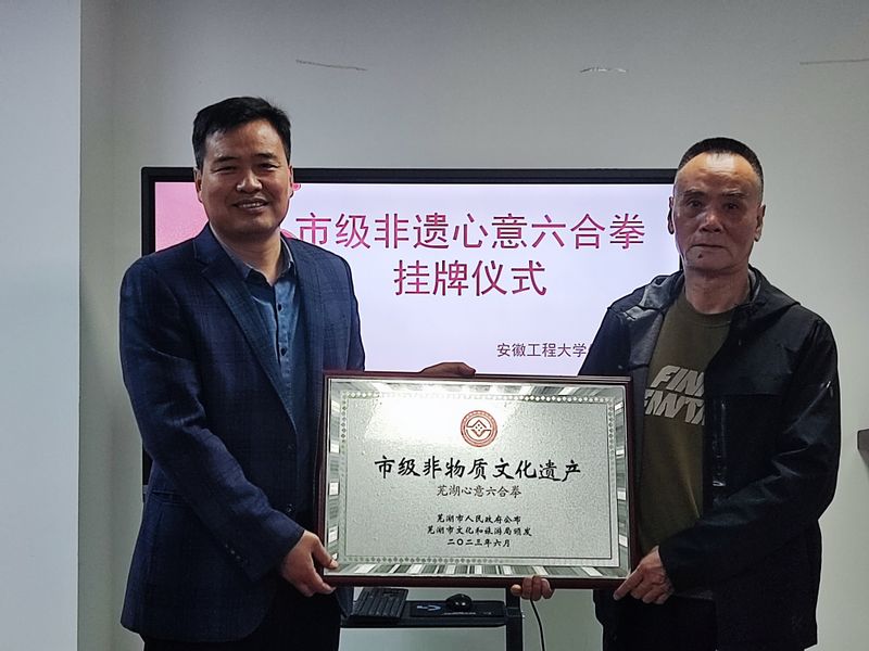 为弘扬中华优秀传统文化,深入推进非遗传承发展工程,更好发挥高校在非物质文化遗产传承中的积极作用。4月30日,芜湖市级非遗项目心意六合拳在体育学院举行挂牌仪式。芜湖心意六合拳代表性传承人陈军,体育学院党政负责人杨善祥、胡好、谢叶寿、金庆红及研究中心主任张勇出席活动。